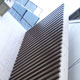 建物のファサードを飾る高さ12mの再生木大型ルーバー(巾2.4m、一部8.7m)。 |