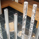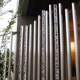 ステンレスヘアラインのパイプとアクリル泡入り丸棒の波型ウォール。 |