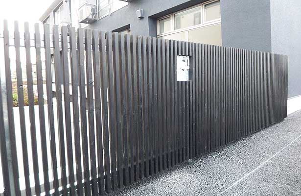 縦格子の門扉・フェンス ラフィーノ三鷹 設計:大藪元宏建築研究所 |
