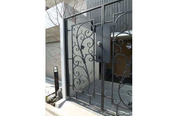 唐草とブドウの葉をあしらったスタンダードな門扉。 |