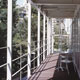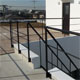 笠木φ34パイプ、支柱φ16丸棒、中桟φ13丸棒という細身のシルエットが特徴的な手摺。