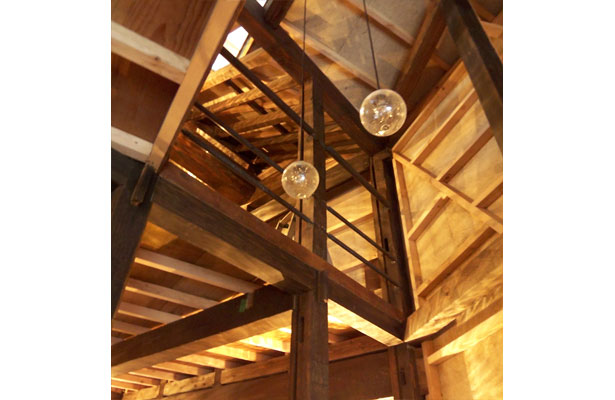 笠木のコーナー部分は、φ16の丸鋼をガスで曲げてRを付けているので、見た目には軽い良印象を受けるが、握ると無垢材の重量を感じる。 |